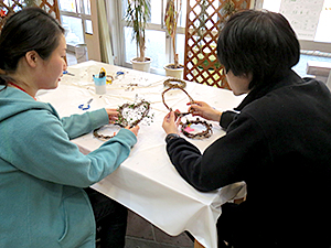 もう一つの環境施設「松山市都市環境学習センター」は、市の西側にある松山総合公園の敷地内にある。その立地柄、親子連れで訪れる人も多い。この施設では、「自然と遊ぶ」「自然と学ぶ」「自然と育む」をテーマに、自然との触れ合いを大事にした展示や、イベントを開催しており、取材日にはつる植物で作るリース作りを行っていた。材料はすべて施設に用意されているので、手ぶらで訪れて、すぐに制作に参加することができた。イベントは、年中通して行われており、1月は新聞で作った凧揚げ、5月は春の草花で作るしおり、9月は、海で拾ったもので作るビーチクラフトなど、季節に合わせて内容も変化する。子どもたちにとっては、「見て」「触って」体験できる楽しい学習の場であり、恵まれた松山の自然を知ることができる施設となっているようだ。