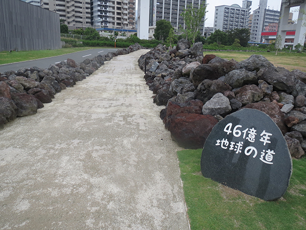そして現在、環境ミュージアムでは、新たな試みにもチャレンジしている。富良野自然塾の塾長で、脚本家の倉本聰氏が考案した「地球の道」と呼ばれるプログラムだ。地球の道は、環境ミュージアムから、東田第一高炉史跡広場へと続くフィールドを舞台に、地球の誕生から現在に至るまでの道のりを自分の足で歩いて体感するというもの。環境ミュージアムのスタッフのガイドのもと、46億年=460mに置き換え、地球の歴史を紐解いていく。地球の内側には何があるのか?地球と月と太陽はどれほど離れているのか?などの疑問を面白く、わかりやすく伝えていく。一歩歩くごとに1000万年の時を刻む道のりでは、地球がいかにもろく繊細で、素晴らしい惑星かを知ることが出来る。地球の道の終点=現在にたどりつくと、人間の登場による地球環境の劇的な変化は、これまでの歴史からすると、ほんのわずかな時の中での出来事だという事を実感させられる。そして、倉本聰氏からのメッセージ「地球は子孫から借りているもの」という言葉で締めくくられている。