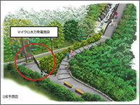 近年では、再生可能エネルギーの導入促進を目指し、市内に数多く流れる「用水」を活かした小水力発電事業も本格化している。2014年3月には、市中心部に位置する本多公園に、園内に流れ落ちる用水を利用したマイクロ水力発電施設が完成予定だ。年間想定発電量は5,300kWhと発電規模は大きくないが、多くの人々が行き交うまちなかに整備することで、環境意識啓発の場としての機能も果たし、今後の未利用水資源の活用モデルとしての役割も期待されている。