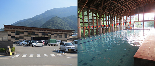(左)オール町産材利用の町役場(右)地熱を利用した「雲の上のプール」