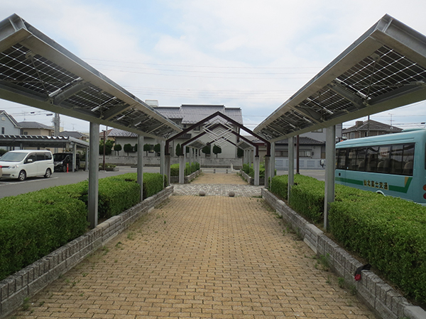 『東松島「絆」カーポートソーラー』は、市内3カ所の防災拠点となる公共施設に設置された、カーポート型の太陽光発電設備。通常時は発電、災害時には市民への電力の供給が可能となり、二つの役割を果たしている。