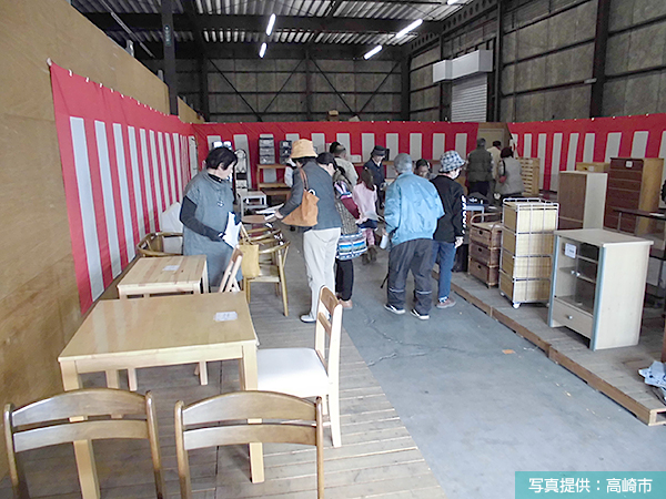 市では、給食残渣の取り組みのほか、「リユースセンター」事業においてもNTT東日本-関信越群馬支店に委託し、2000年から行っている。これは、市民が排出する粗大ごみを再び使用できる状態に修理、清掃し、希望する市民へと還元するもの。堆肥化施設に隣接した倉庫を年2回開放し、展示、抽選を行っている。リユース品公開展示の際には、古タイヤ、バッテリー、消火器などの有料回収や使用済小型家電の無料回収も併せて実施。2013年度は1,460人が来場し、そのうち813名がリユース品の抽選に参加した。