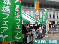 「環境フェア」は、10年以上続く環境イベント。例年6月に開催され、昨年度は5,000人ほどの来場者数を記録している。イベントでは、市民団体や事業者、行政などで構成される「たかさき環境パートナーシップ会議」に所属する会員が中心となり、環境活動の紹介やバザー、環境に関連した物品の配布などが行われる他、ステージイベントも実施。昨年のステージでは「環境大声コンテスト」と題した催しも開かれた。このコンテストでは、「ゴミ収集車いつもありがとう!」などといった、環境に関連した言葉を大声で叫び、その内容と声の大きさを競うというもの。環境と遊びが融合したユニークな企画だ。また、市庁舎の通路では、古着、古本、使用済小型家電のドライブスルー回収を実施し、リユース、リサイクルの推進を呼びかけた。