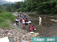 市では、子どもたちに環境の大切さを知り、肌で直接感じ学んでほしいという思いを込め、1993年より市内の小学4年生~6年生を対象とした「水生生物調査」を夏休み期間に合わせ行っている。この取り組みでは、市内にある二つの河川「碓氷川」「烏川」に棲む水生生物(指標生物)の種類を調べ、河川の水質状態を判定する。川に入る機会が減少し、自然とのふれあいが不足している子どもたち自らが、川に入り体験することにより、川に親しんでもらうことはもちろん、水の汚れ具合によって生物の種類に変化が起きることを認識することで、「川をきれいにしよう」という意識を芽生えさせる。そして、その意識の輪を家庭や地域へと広げていきたい考えだ。