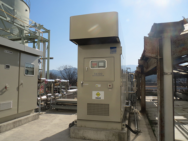 日田市浄化センターでは、「消化ガスコージェネレーションシステム」を設置。下水汚泥の処理過程で発生する消化ガスをマイクロガスタービンの燃料として発電を行っている。ガスタービンは完全燃焼するため、排ガスは極めてクリーン。年間発電量は約81万kWhで、二酸化炭素約450tの削減効果をあげている。