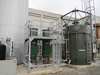本場泡盛を製造する株式会社多良川では、農林水産省の平成21年度地域バイオマス利活用交付金を受けた事業をスタートさせた。泡盛製造過程で排出される最大6t/日の泡盛蒸留粕を同工場内のメタン発酵槽施設へポンプで輸送し、バイオガスを発生させる。そして、そのバイオガスで蒸気を製造し、工場の泡盛蒸留工程や洗瓶工程の際に利用するというものだ。