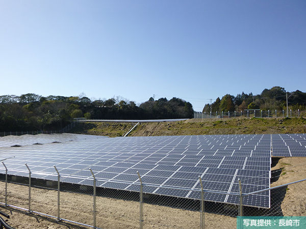 地域の資源を有効活用した、再生可能エネルギーへの転換も推進している。長崎市では、2013年に「ながさきソーラーネットプロジェクト」を立ち上げ、太陽光発電事業への本格的な参入を果たした。市中北部・三京町にある「ながさきソーラーネット[メガ]三京発電所(1,115kW)」が2014年3月に運転を開始。市自らがメガソーラーを整備し、低炭素化とともに、太陽光発電の普及啓発を行っている。市内の公共施設への太陽光発電設備設置も進められ、現在までに39ヵ所での設置が完了している。