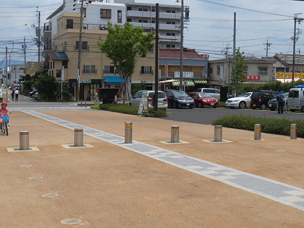 また、屋外の道路には豊田市が進める「ITS」が随所に導入されている。ITSとは、“高度道路交通システム”を意味し、人、道路、自動車が調和し、交通問題や環境課題の解決を図るシステムのことである。 例えばITSの一つ、「バス車両進入管理システム」の作動により、バスが敷地内に進入する時のみ車止めが降下。LEDライトが車道や停止位置をガイドする。「可動式狭さくシステム」では、歩行者の安全確保が必要な箇所で狭さくが上昇するなど、バス、歩行者双方の視点に配慮した仕組みを構築。これらのITS設備は太陽光で発電した電力で賄われており、最先端の技術と低炭素な社会を同時に実現している。