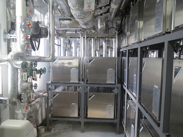 そんな中、CO286%削減に向けた取り組みとして先陣を切ったのが、地中熱ヒートポンプの導入である。地中温度は深さ10m以上では、年間を通してほぼ一定に保たれており、安定した熱源として有用だ。ニセコ町は、比較的地中温度の高い地域に属しており、その温度は11℃ほど。熱の採取は、ボアホールと呼ばれる穴を掘り、その穴にループ状のパイプを挿入、そしてその中に不凍液を満たすことで行われる。寒冷地に適した自然エネルギーの活用方法として積極的に導入が進められ、現在、町内5施設での運用が始まっている。その中の一施設である「ニセコ町民センター」は、町内最大となる10kWの暖房19台、冷房6台のチラーが設置され、これまでの重油ボイラーによる暖房からの脱却を図った。導入年にセンターの増築、施設利用者の増加があったため単純比較はできないが、重油代、電気代を合計した単位面積当たりの単価は約5割削減、一人当たりの単価では約6割の削減につながった。今後は、地中熱のみならず、温泉などの排熱を利用したヒートポンプの導入計画も、大型観光施設を中心に進めていく。