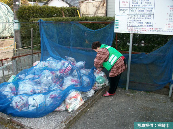 循環型社会の形成に向け、ごみの減量化対策も継続して取り組んでいる。積極的な資源物の分別収集や家庭用廃食用油のリサイクル、家庭ごみの有料化などがその主たるものだ。それに加え、宮崎市では地域の環境美化リーダー「分別大使制度」を導入。各自治会から原則2名が分別大使に任命され、正しいごみの出し方や集積所の美化、ごみの減量化やリサイクル運動に関する指導、啓発をはじめ、各地域のごみ問題の把握や、市への意見提出などを行う。集積所の美化活動は、観光地としての景観保護にもつながる大事な取り組みだ。制度の導入は各自治会に一任されているが、2013年度は600自治会、1,194名が分別大使に就任。市でも、貴重な人材となる「分別大使」のための研修会が開催され、市民の環境意識の向上を図る役割を担っている。