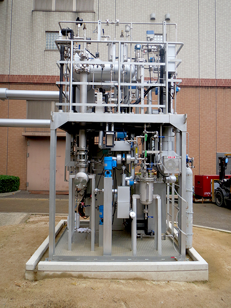 東芝製のこの装置は、ごみ処理過程において発生する排ガスからCO2を分離回収できる、最先端技術の結晶だ。CO2だけを取り込んだ液体を加熱することにより、純度99%以上のCO2を得ることが出来、一日あたりの回収量は約20kg。CO2の大気中への排出を低減し、地球温暖化対策に貢献するだけでなく、CO2を活用する企業の誘致にも一役を買い、雇用創出、地域振興へとつながっていく。