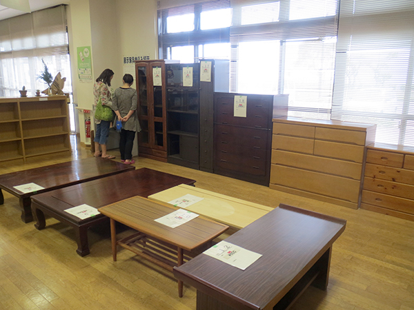 同じく、次世代エネルギーパーク内にある「福山市リサイクルプラザ」は、2000年にオープンした福山市の環境学習の拠点施設。市内の小学4年生は、社会科見学でここを訪れる。福山市のごみの現状や3Rの理解を深める講座、非営利団体「エコローズ企画」による、布ぞうりや木工、衣類のリフォームなどの体験講座を催している。また、館内には、エコローズ企画による即売品コーナーや、リユース(再利用)を促進するため、不用となった家具を展示・販売している。粗大ごみの削減だけでなく、市民にとってもメリットがある取り組みだ。市では、リサイクルプラザ外でも出前講座として、出張型の講座を展開。市内のほぼ全ての小学校や申込みがあった地域・団体などを対象に開催されている。